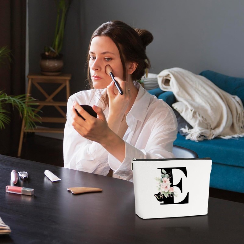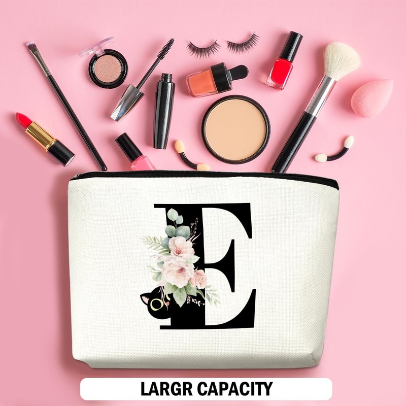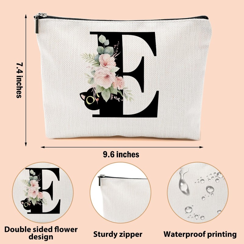 CFGBFDGH Floral Cat Initial Makeup Bag, Personalized Skin Care Bag, Travel Organizer Toiletry Bags for Women Mom Friends, Cosmetic Bags Makeup Pouch with Zipper, Letter E