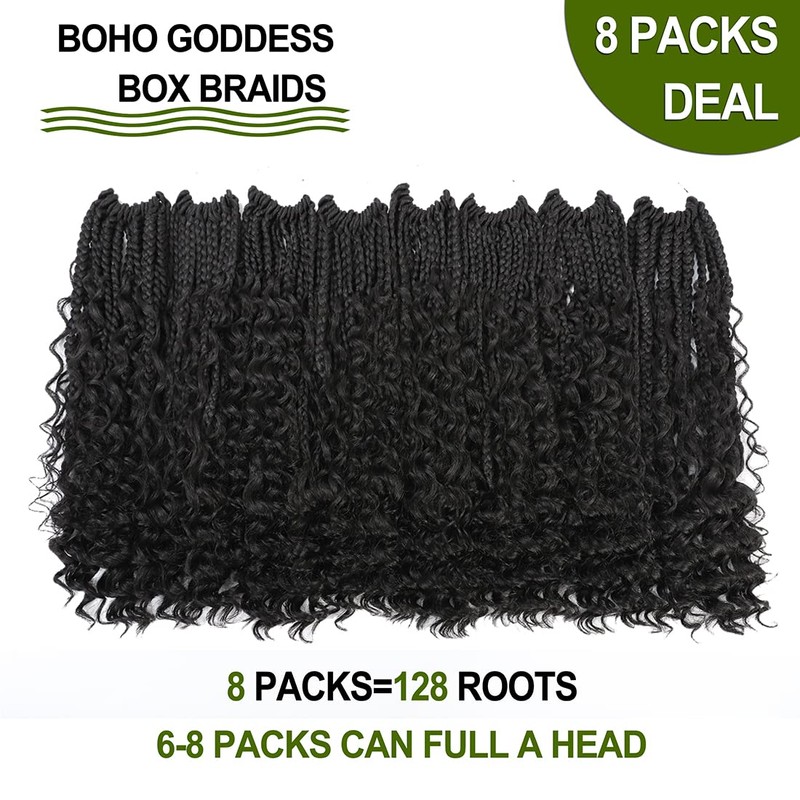 - Our brand - Boho Goddess Box Braid Crochet Hair is made of 100% handmade crochet trims, pre-looped and made of high quality fibres. Crochet box braids with curly ends. Made of high quality low temperature flame retardant synthetic fibre.