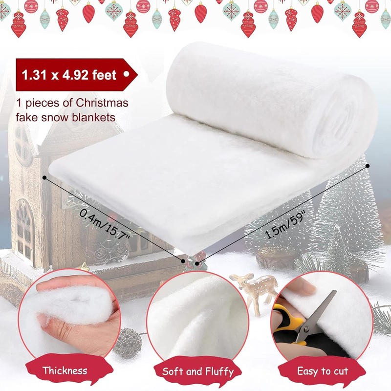 - 【Size Information】: The density weight of artificial snow blanket is 130g, 1.3 x 4.9 Ft/0.4 x 1.5m. Which is enough for Christmas village display, Christmas window decoration, Christmas tree, winter yard decorations and so on. And you can fold it to store when you don't need it, it will not take up you too much space