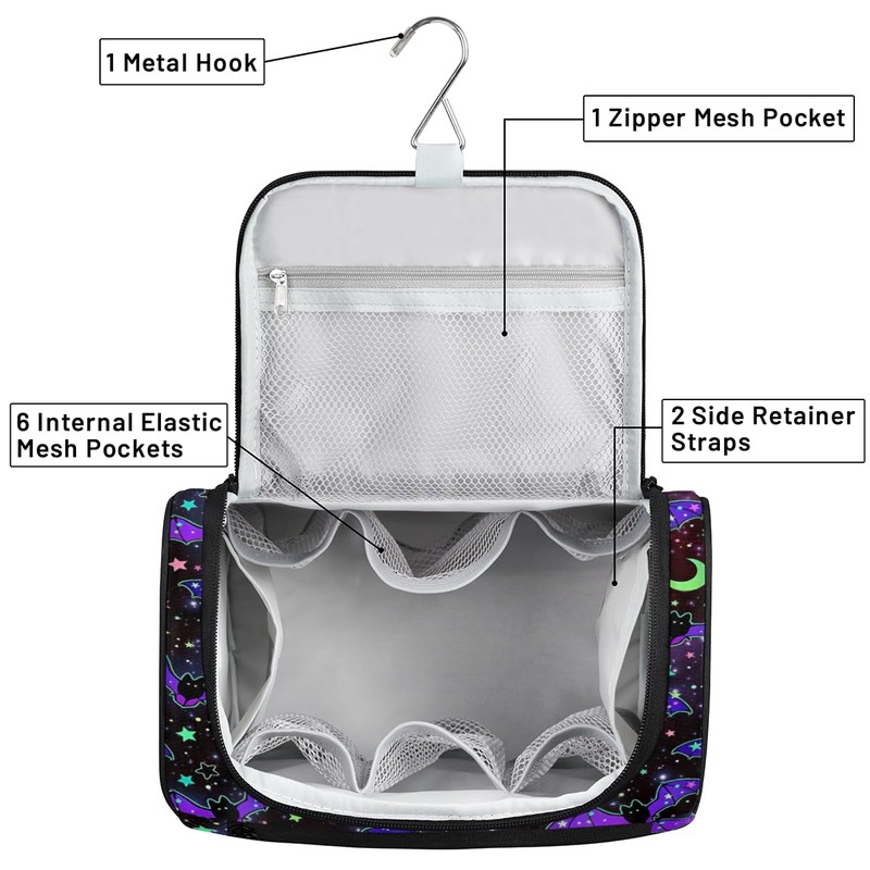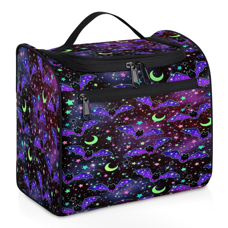 cfpolar Toiletry Bag for Women, Bat Galaxy Moon Flower Hanging Travel Toiletry Bag, Water-resistant Cosmetic Makeup Organizer for Toiletries and Cosmetics, Bathroom Shower Bag with Handle and Hook