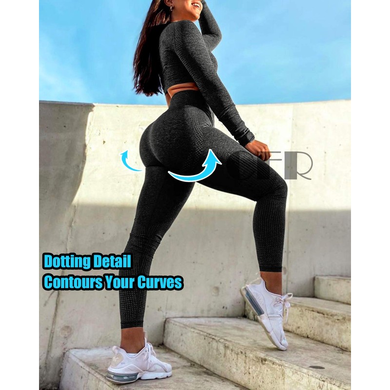 CFR Women High Waist Yoga Pants Dot Contouring Vital Seamless Leggings #0 Black M