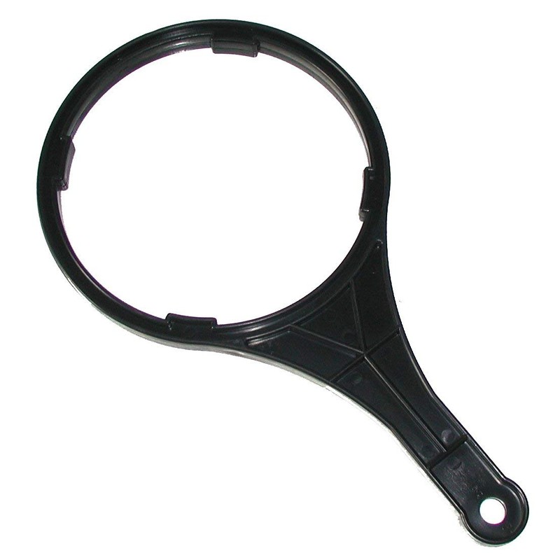 This water filter wrench is composed of long-lasting solid plastic, for sturdiness and corrosion protection. A water filter wrench is a unique tool that fits around the top of a water filter housing and makes it simple to release the plastic sump that holds the filter cartridge. A quality wrench in the correct size for your water filtration system simplifies cartridge replacement and helps to eliminate leaks. It works with all standard pre-filter housings and may be used with all types of under sink and RO systems.