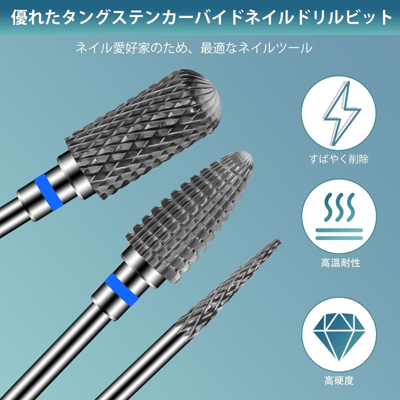 - プレミアムなチャングステンカーバイトネイルマシン ビット:高品質なチャングステンカーバイト材料で作られており、耐久性があり硬いジェルネイルを素早く取り除くことができます。優れたネイルビットは耐熱性によって肌を保護します。