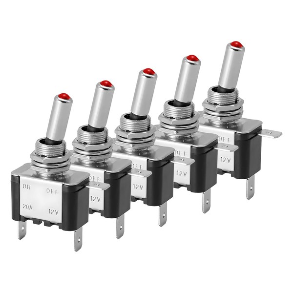 CGEAMDY Pack of 5 Car Toggle Switch, On/Off Metal Car Rocker Switch, Rocker Toggle Switch with Waterproof Protective Cap, Metal Toggle Switch for Car, Truck, Marine Boat