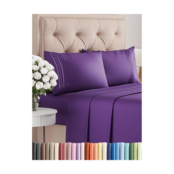CGK Unlimited Queen Size 4 Piece Sheet Set - Comfy Breathable & Cooling Bed Sheets Set - Hotel Luxury Bedding for Women, Men, Kids & Teens - Deep Pockets, Easy Secure Fit, Soft and Wrinkle Free - Oeko-Tex - Purple