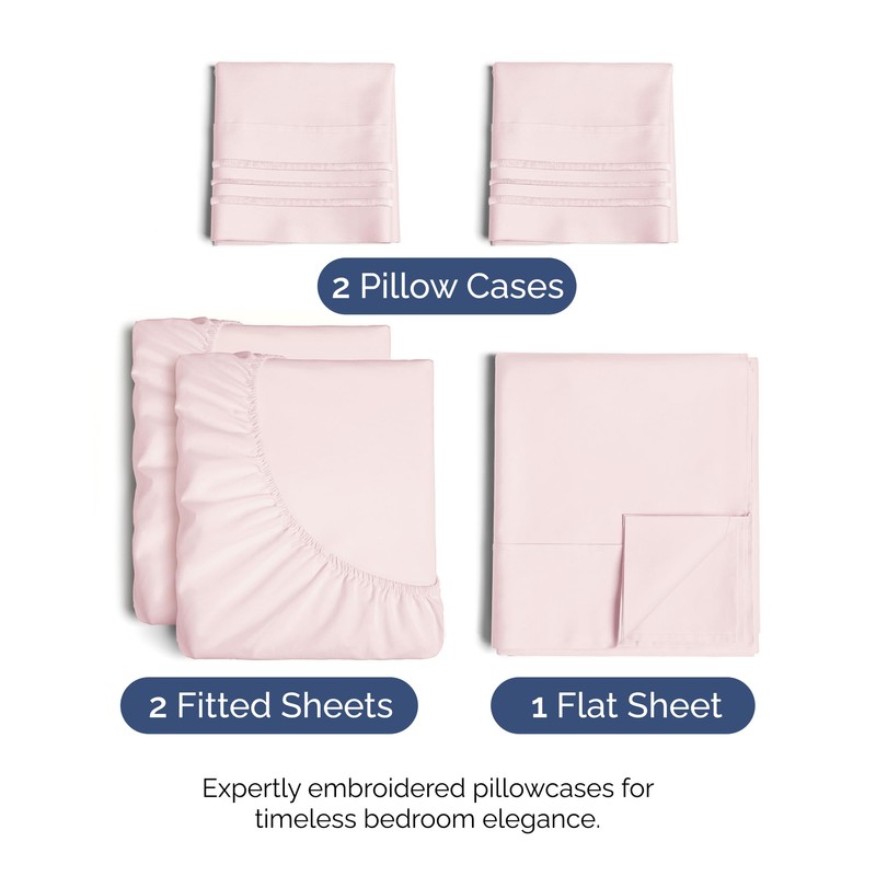 CGK Unlimited Split King Size 5 Piece Sheet Set - Comfy Breathable & Cooling Bed Sheets Set - Hotel Luxury Bedding for Women, Men, Kids & Teens - Deep Pockets, Easy-Fit, Soft and Wrinkle Free - Oeko-Tex - Lav Pink