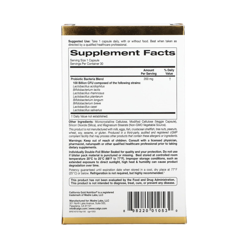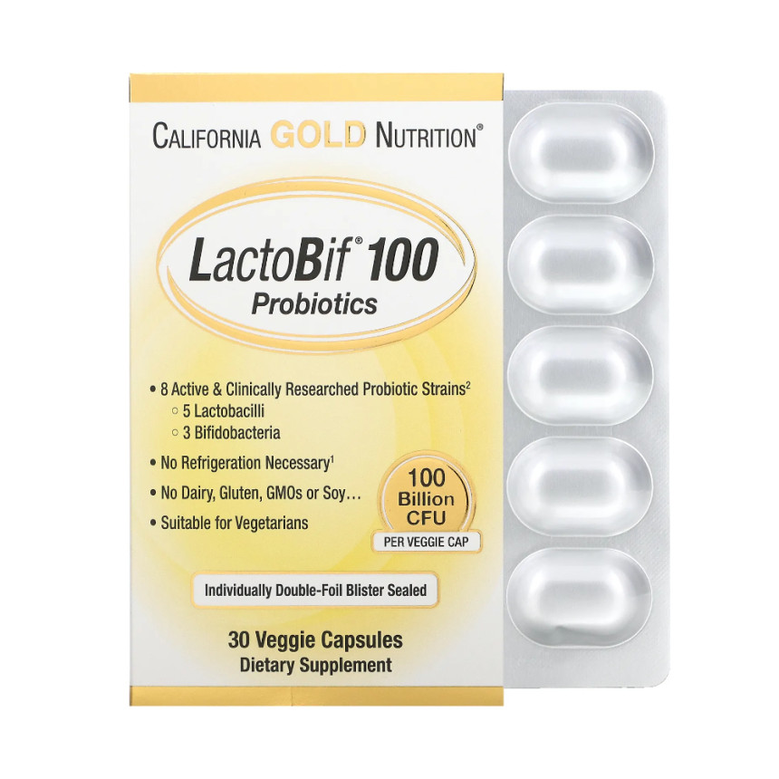 California Gold Nutrition, LactoBif 100 Probiotics, 100 Billion CFU, 30 Veggie Capsules