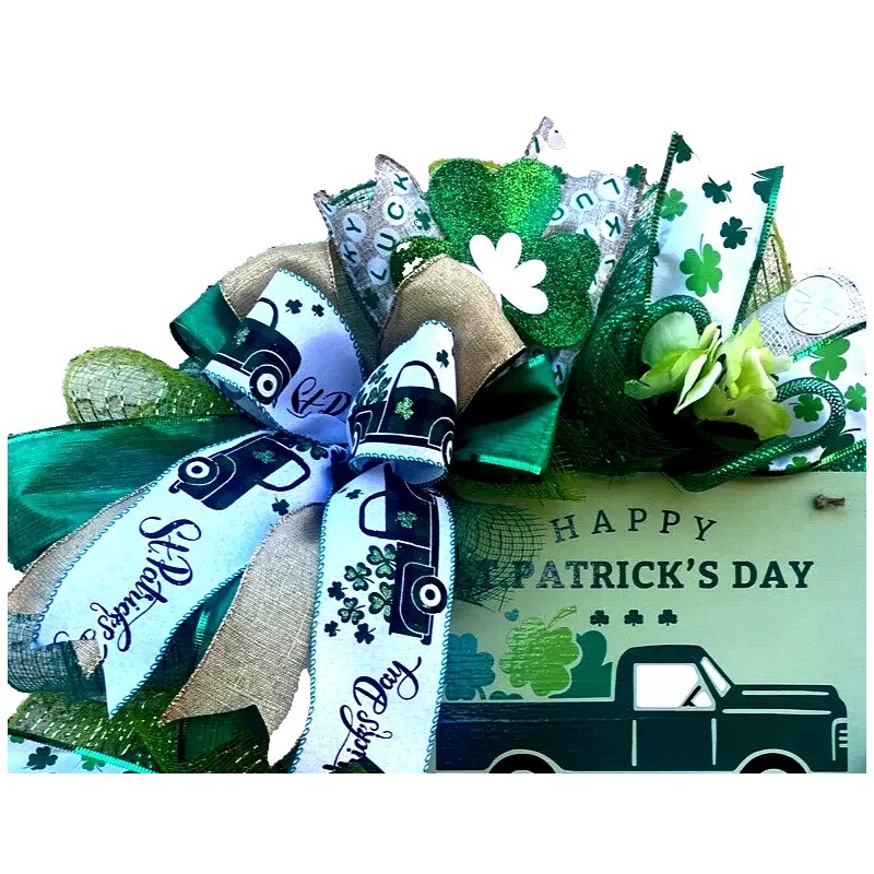 CH St. Patricks Day 2.5" by 3 yards Wired Ribbon Glitter Shamrocks Plaid Truck