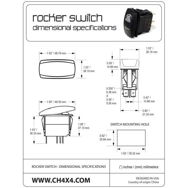 - Different LED lights color to choose from (Blue-Red-Green-White-Amber) Single Pole, Single Throw ON-OFF switch
