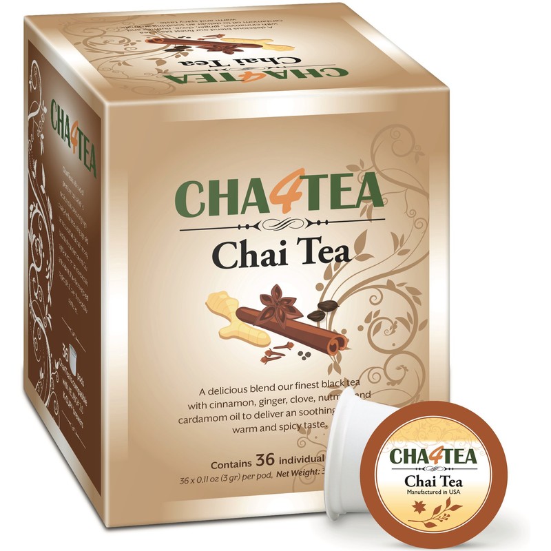 Cha4TEA 36-Count Chai Black Tea Pods for Keurig K-Cup Brewers