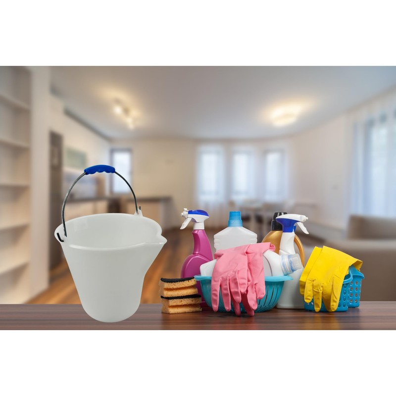 Chabrias Ltd Heavy Duty Plastic Bucket with Handle 12 Litre, White, Cleaning Bucket, Colour Coded Cleaning, Size: 32(H) x35(Dia) cm, Graduated Bucket with Pouring Lip, Professional & Home Use, L571.