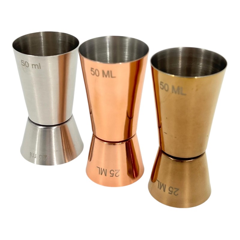 Chabrias Ltd Stainless Steel 25/50 ml Measure Jigger Bar Craft Dual Spirit Measure Cup Peg Measuring Cup for Bar Party Wine Cocktail Shaker (1, Copper)