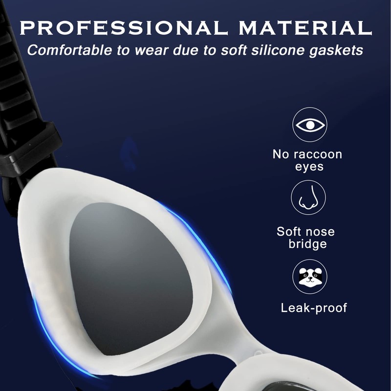 - 【SUPER COMFORTABLE】Made of the premium soft silicone, the ergonomic 3D frame is designed to pertectly fit any eye shape. Longtime wearing does not mean uncomfortable or leaky, better seal but no raccoon eyes at all. Our swimming goggles are pressure resistant and crack resistant, providing full protection