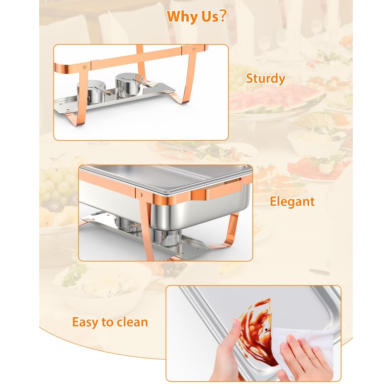 Chafing Dish for Buffet Set, 2 Packs 8 Qt Chafers and Buffet Warmers Sets With Folding Frame for Weddings Parties Banquets Catering Events, Rose Gold