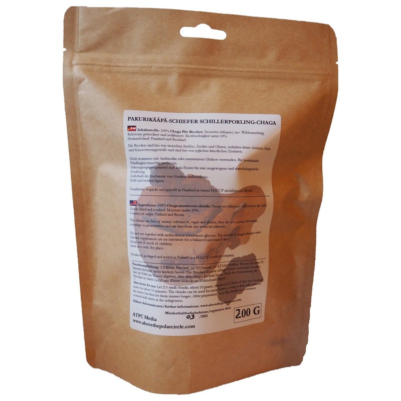 The farther in the north and the older the fungus - the more rich and more active ingredients. Our Chaga comes from Finnish Lapland and grows far away from industry and roads.
