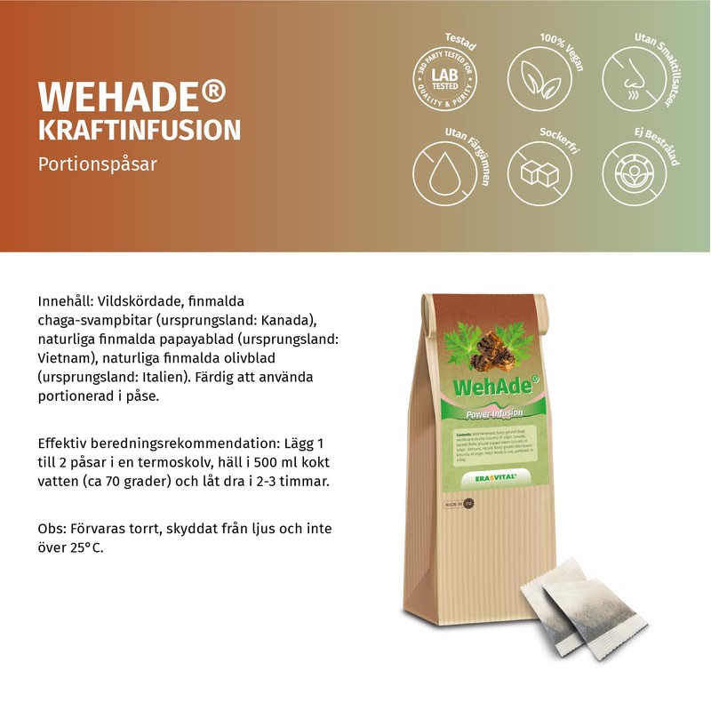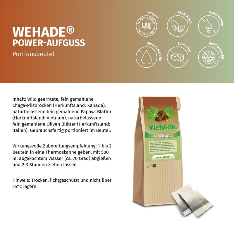 Wild harvested, finely ground Siberian Chaga mushroom chunks (Inonotus obliquus), natural finely ground papaya leaves (Carica papaya), natural finely ground olive leaves. Ready to use portioned in a bag. *No artificial flavours, no technical additives.