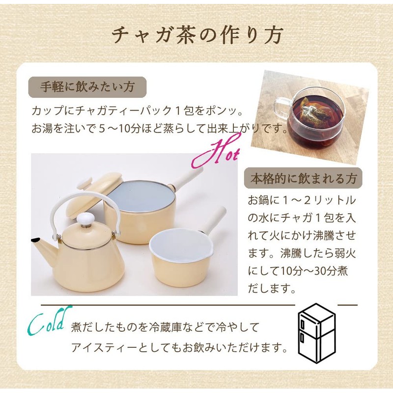 - How to use: Fill the pot with 1-2 liters of water and put 1 chaga in 10-15 minutes for guide