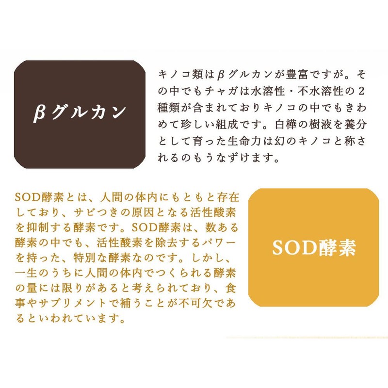 - Chaga capacity (tea pack): 0.07 oz (2 g) pack x 30