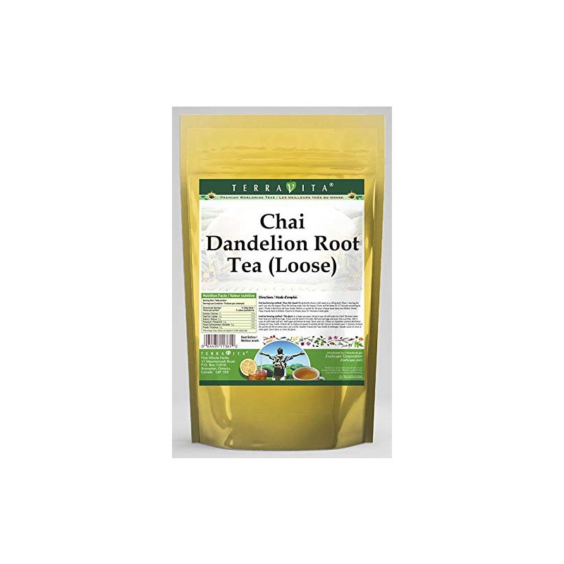 Our Chai Dandelion Root tea is a delicious naturally flavored Dandelion Root coffee substitute with Cinnamon Chips, Cardamom Seeds and Ginger that you will enjoy relaxing with anytime! The natural and caffeine-free Chai taste is delicious! - Ingredients: Dandelion Root, Cinnamon Chips, Cardamom Seeds, Ginger and Natural Chai Flavor. - Hot tea brewing method: Bring freshly drawn cold water to a rolling boil. Place 1 teaspoon of tea for each desired cup into the teapot. Pour the boiling water into the pot, cover and let steep for 2-4 minutes. Strain and pour into your cup; add milk and natural sweeteners to taste. - Iced tea brewing method: (to make 1 liter/quart): Place 5 teaspoons of tea into a teapot or heat resistant pitcher. Pour 1 1/4 cups of freshly boiled water over the tea itself. Steep for 5 minutes. Fill a serving pitcher with 1/4 cold water. Strain and pour the tea into the serving pitcher Add ice and top up with cold water. Sweeten and garnish to taste. - TerraVita is an exclusive line of premium-quality, natural source products that use only the finest, purest and most potent ingredients found around the world. TerraVita is hallmarked by the highest possible standards of purity, potency, stability and freshness. All of our products are prepared with the highest elements of quality control, from raw materials through the entire manufacturing process, up to and including the moment that the bottles or bags are sealed for freshness and shipped out to you. Our highest possible standards are certified by independent laboratories and backed by our personal guarantee. - TerraVita exists to meet and ensure your family's health and wellness without the harmful effects or chemicals and prescription medications. We strive to make all of our products affordable and r