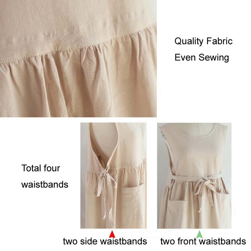 - High Quality Materials The large women apron is made of cotton canvas. The kitchen apron for women with 2 pockets made of cotton and linen is breathable, soft and comfortable. Large apron for women, soft, comfortable to wear, sturdy and durable, shrink resistant, natural clothes apron for skin. Kitchen apron for women, durable, easy to care for.