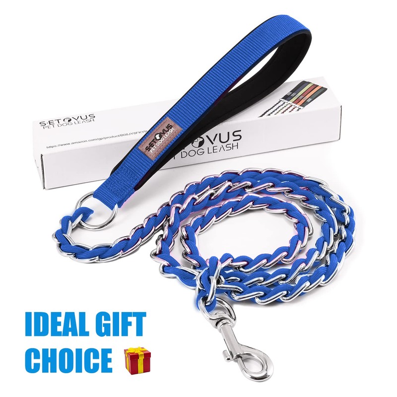 - [Durable and Chew Proof] - Our chain link dog leash using high quality plating process, comes with heavy duty swiveled clip, simple and practical, strong tensile resistance.