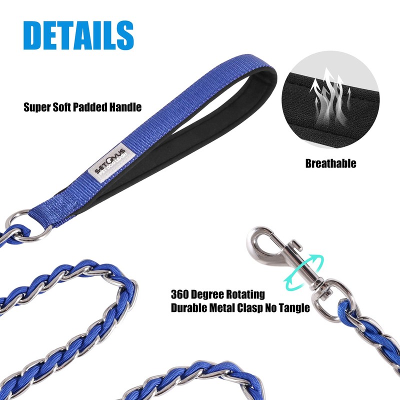 - [Durable and Chew Proof] - Our chain link dog leash using high quality plating process, comes with heavy duty swiveled clip, simple and practical, strong tensile resistance.