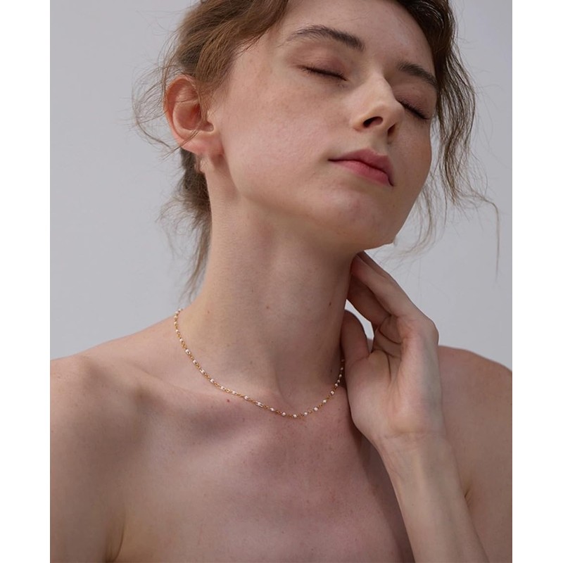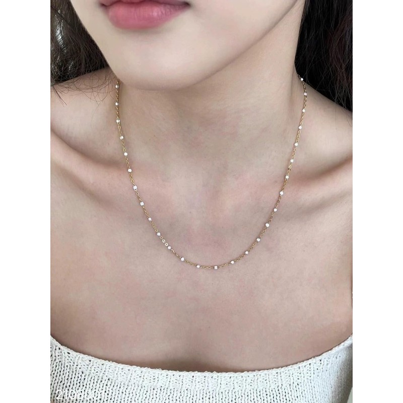 Chain Necklaces Turquoise/White Beaded Choker for Women Dainty 18K Gold Plated Chain Necklace Titanium Stainless Steel Hypoallergenic Trendy (White Beads)