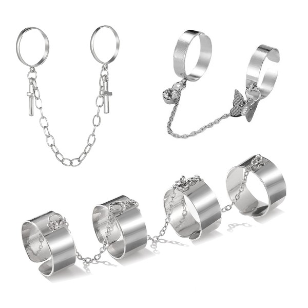 Chain Rings for Women Punk Rings with Chains Open Finger Rings Set Gothic Stackable Knuckle Midi Rings (Chain Rings Set A)