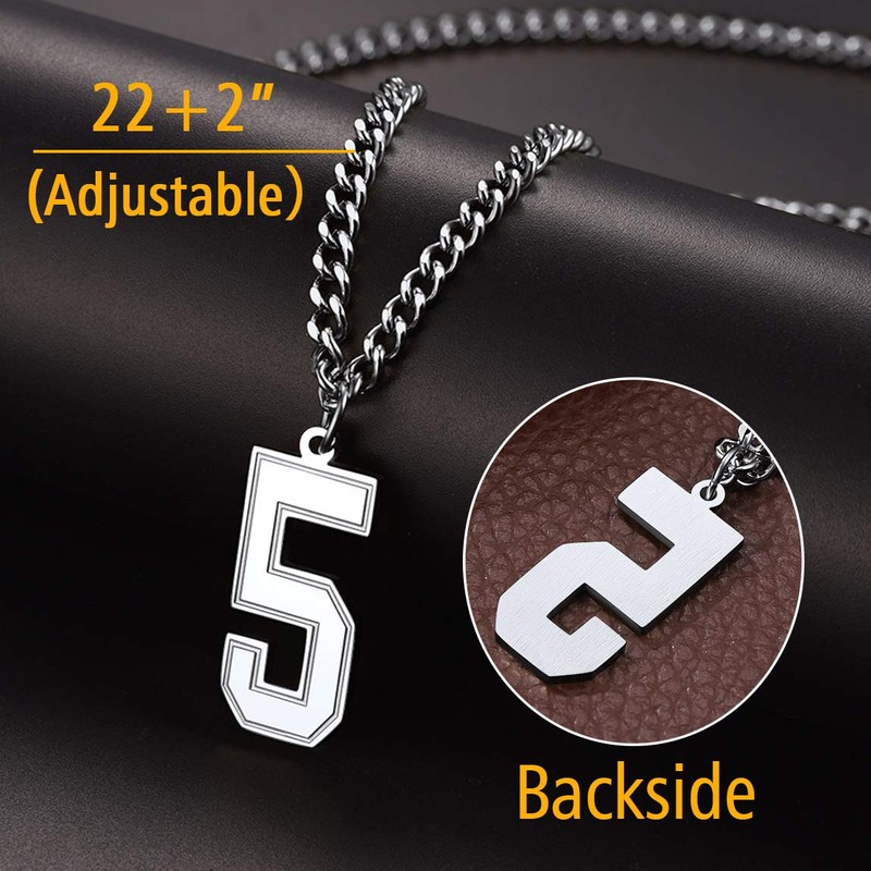 - 👍🌈Jersey Number Necklace👍🌈 Each pendant is crafted from High Polished tempered stainless steel in order to stand the test of time throughout a players career. Perfect gift for who playing sports. Pendant is shiny and has a good weight to it,Wears it all the time with no problem.