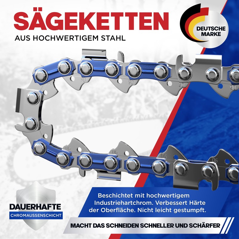 - Steel with chrome coating: the chain saw is characterised by a high-quality hard chrome surface, which increases abrasion resistance. It stays sharp and allows for quick and precise cutting.