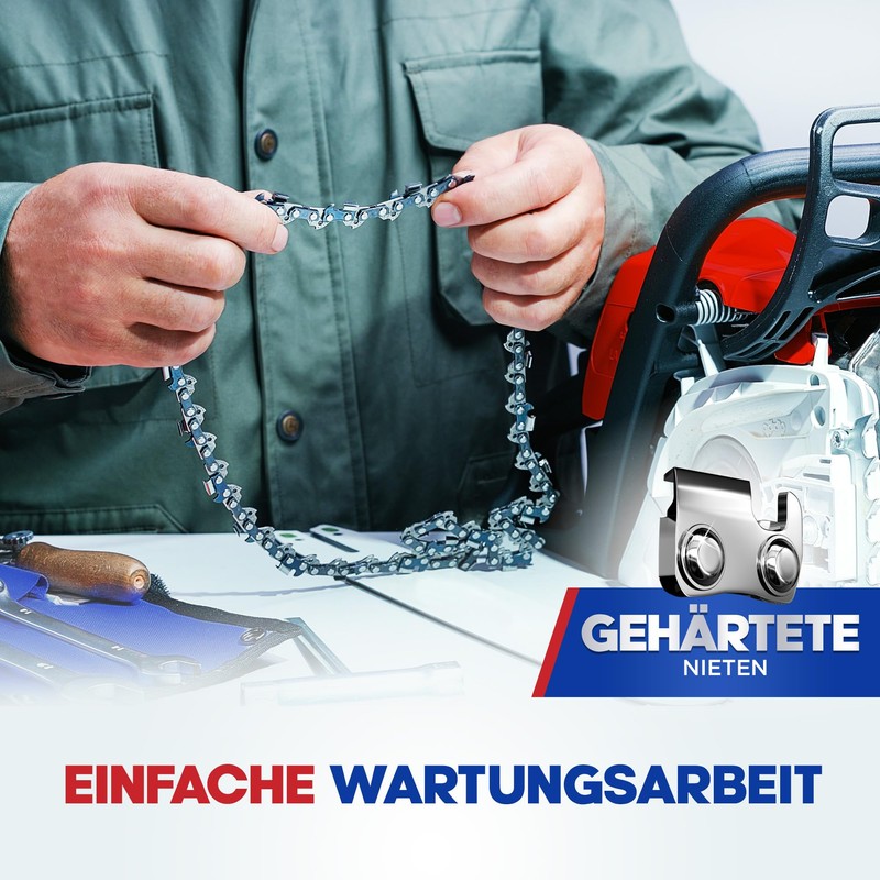 - Heat treated connection rivets – the rivets are specially heat-treated and quenched to strengthen the bond between the chain chainsaw. They are particularly durable and not easy to break.