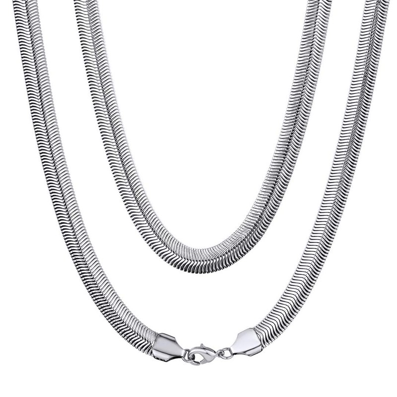 Design: ChainsHouse 8 mm wide flat snake chain without pendant made of 316L stainless steel with selectable colour silver/black/gold and choice of length 18/22/26/28/30 inches for men.