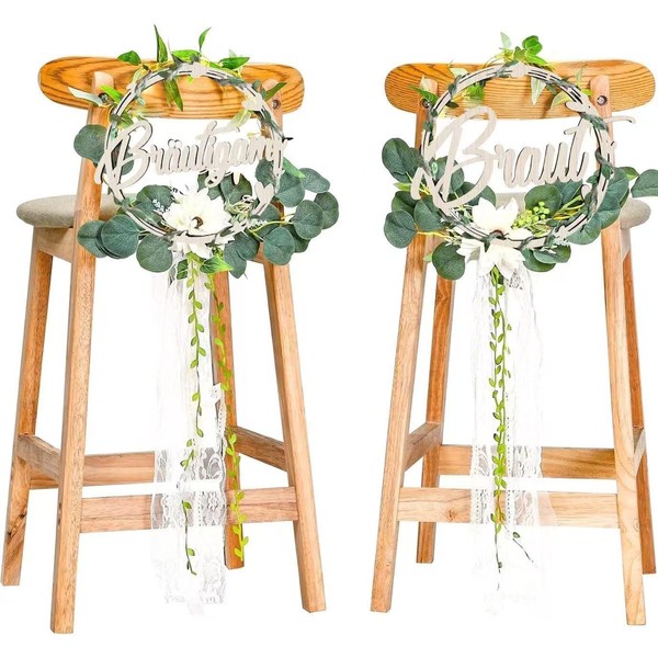 - Material: chair signs wedding are made of environmentally friendly wood and artificial eucalyptus, you can easily tie it to the chair, lightweight and durable, reusable.