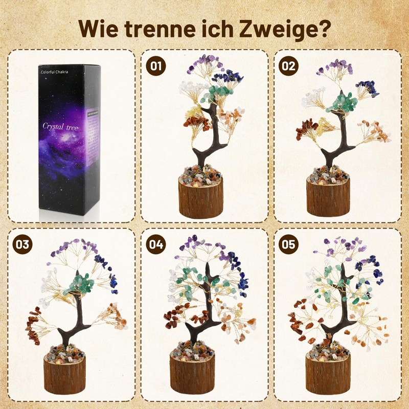 - Creative Crystal Tree Decoration The chakra stones crystal tree is a unique spiritual decoration, which harmonizes the flow of energy and creates an elegant atmosphere in your home. With its sparkling crystals, this tree of life becomes a real eye-catcher in any room.