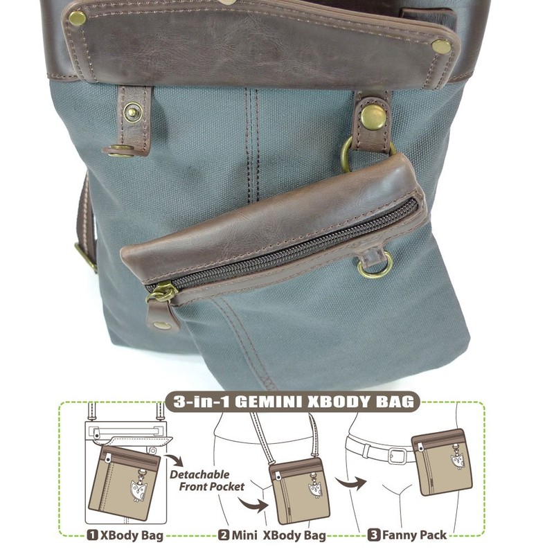 - Detachable front pocket can turn into a mini crossbody bag or a fanny pack!