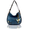 Chala Handbags, Casual Style, Soft, Large Shoulder or Crossbody Purse with Keyfob - Navy Blue (Dragonfly Keyfob)