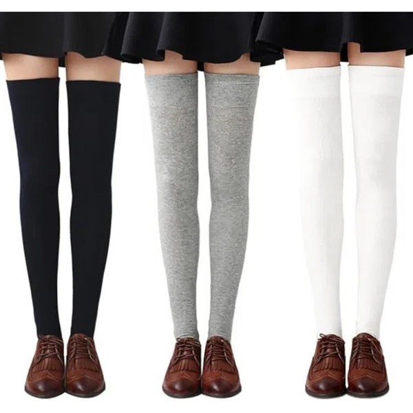 Chalier Womens Thigh High Socks Cotton Striped Over the Knee Socks Long Knee High Stockings for Women, A-Solid 01-3 Pairs
