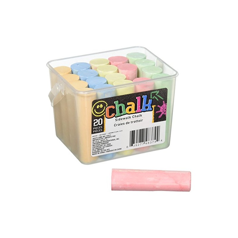 - Each plastic box is filled with 20 pieces of 3 inch long brightly-colored chalk