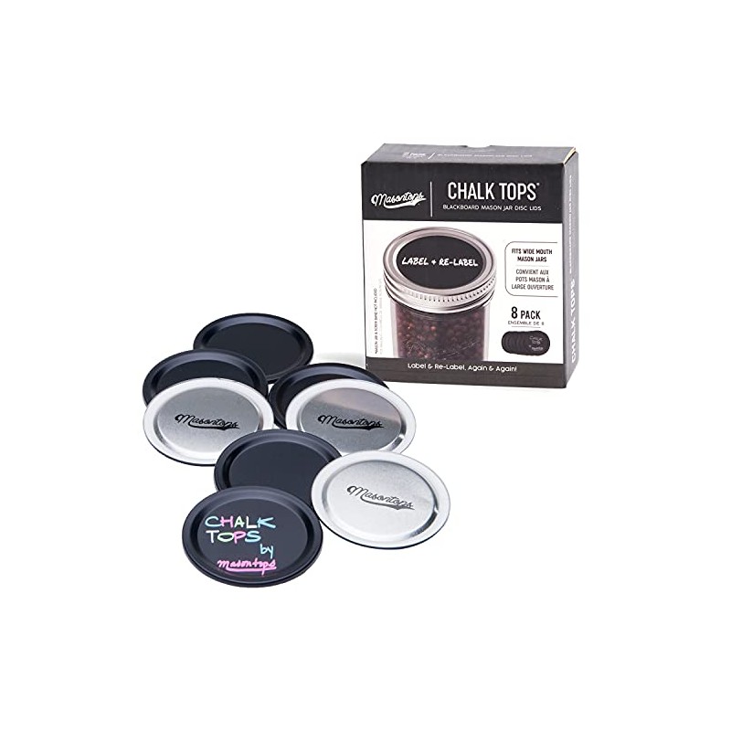 Chalk Tops - Reusable Chalkboard Lids for Mason Jars - 8 Pack - Wide Mouth