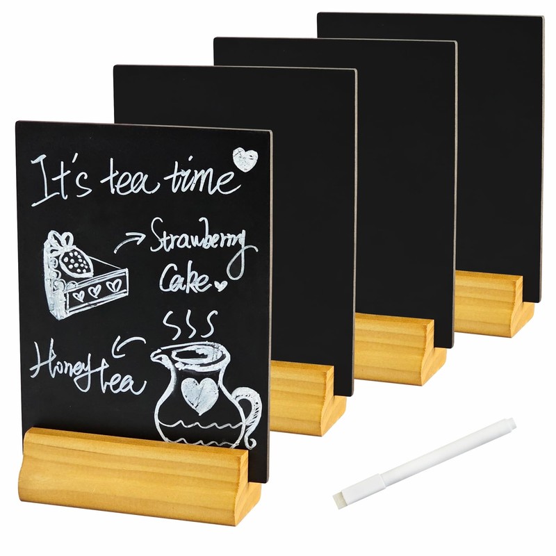 - ✔ A5 BLACKBOARD SET -- Included 4 chalkboards, 4 solid wood stands and 1 liquid chalk pen