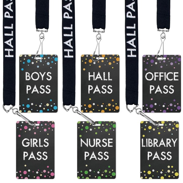 Ceiba Tree Chalkboard Hall Pass Lanyards – Set of 6 (Hall, Office, Library, Nurse, Boy & Girl) with Breakaway Buckle for Students, Teachers & Office Supplies