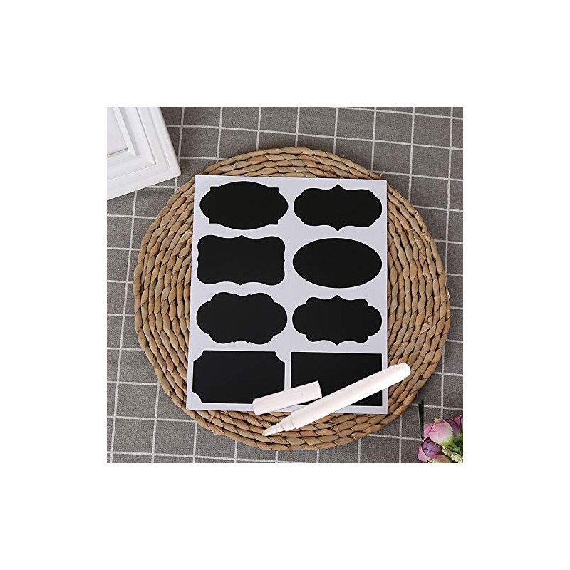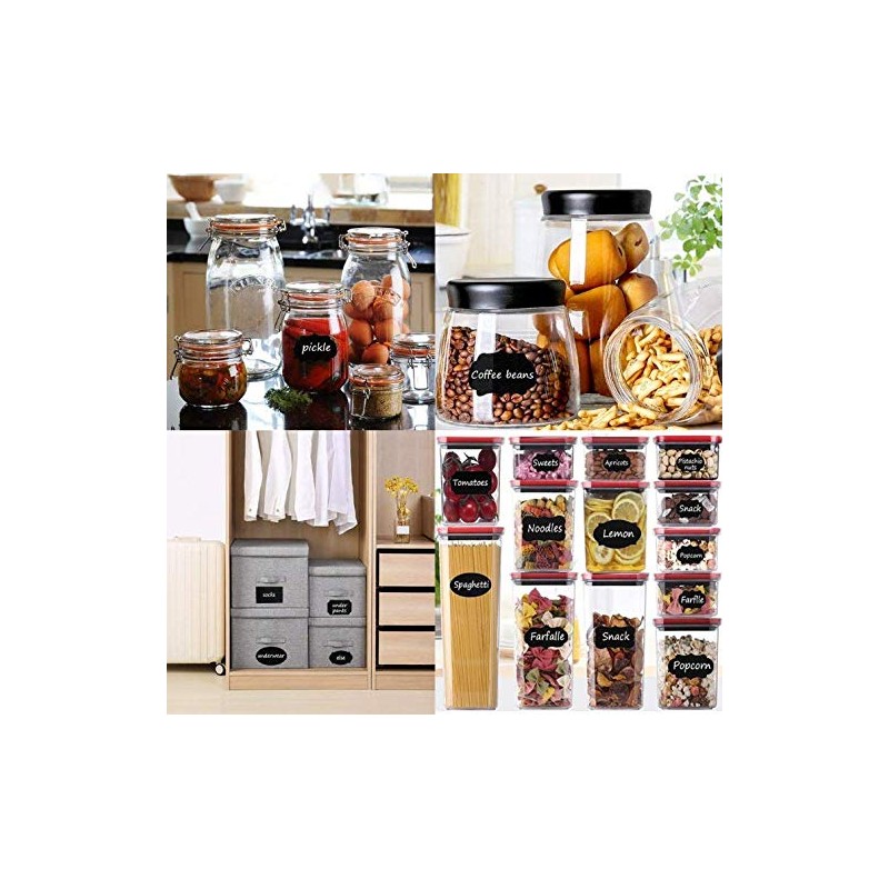 - PREMIUM QUALITY:Matte texture with a crisp clean uniform dye cut shape. The surface is not shiny or slippery, strong and durable for an appealing look. These Premium Chalkboard Labels allows regular chalk or any liquid chalk maker to write on. The ink dries quickly and it doesn't flake off.Dishwasher and refrigerator available.