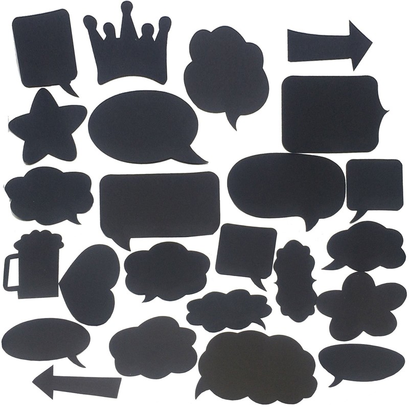 - Includes 2 Arrows, 1 Cloud Bubble, 1 Beer Mug, 1 Crown, 1 Heart, 1 Star, 1 Flower, 1 Saying Board, 4 Large and Small Oval Speech Boards, 5 Large and Small Oblong Speech Boards, 6 Large and Small Cloud Speech Boards
