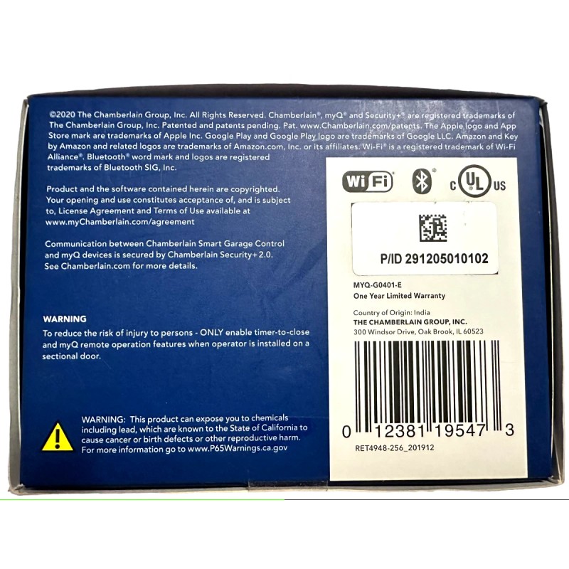 Chamberlain MyQ Smart Garage Door Opener Wireless & Wi-Fi Hub (myQ-G0401-E)