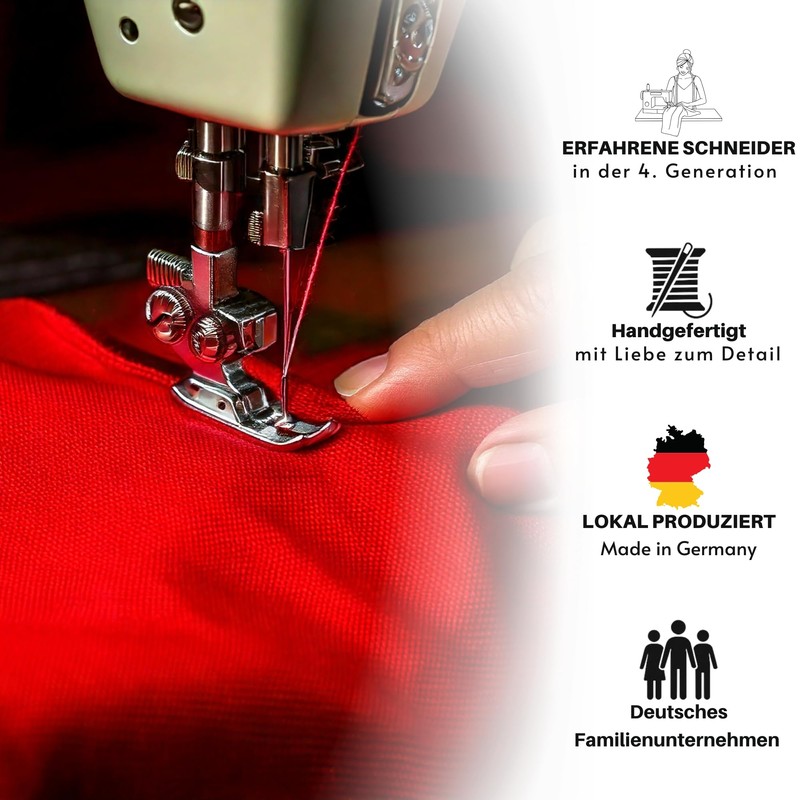 - Handmade in Germany: made with attention to detail - in our factory in Germany, by experienced tailors in the fourth generation. Each piece is truly unique from traditional crafts.
