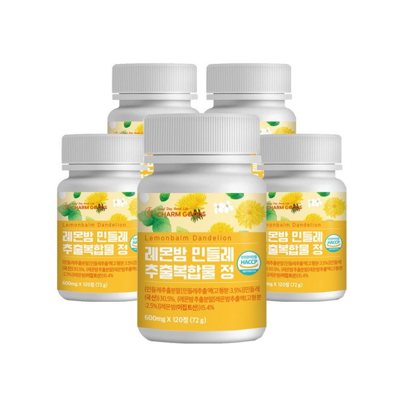 [Chamgoods] Lemon Balm Dandelion Extract Complex 120 tablets, 5 boxes / [참굿즈] 레몬밤 민들레 추출복합물 120정 5통