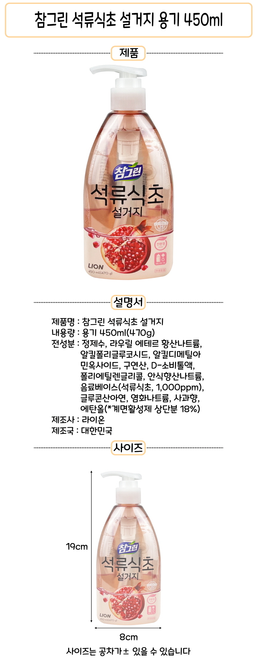 Chamgreen Pomegranate Vinegar Dish Soap (Bottle Type) 450ml