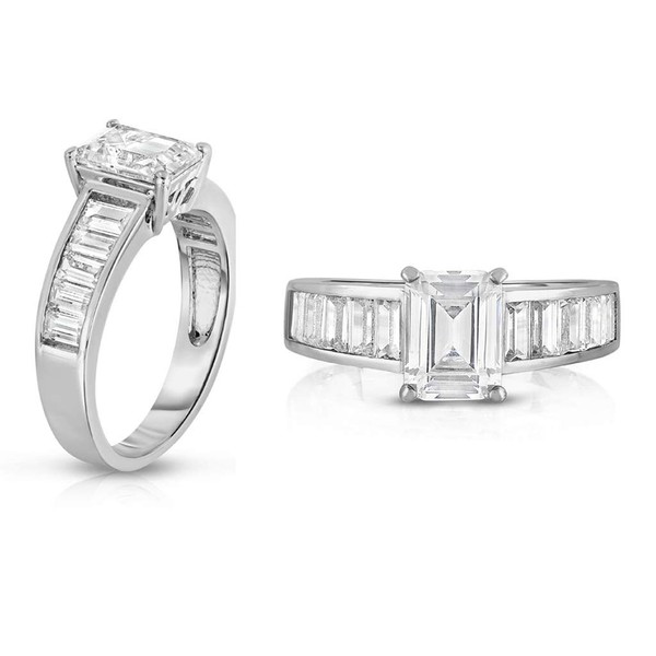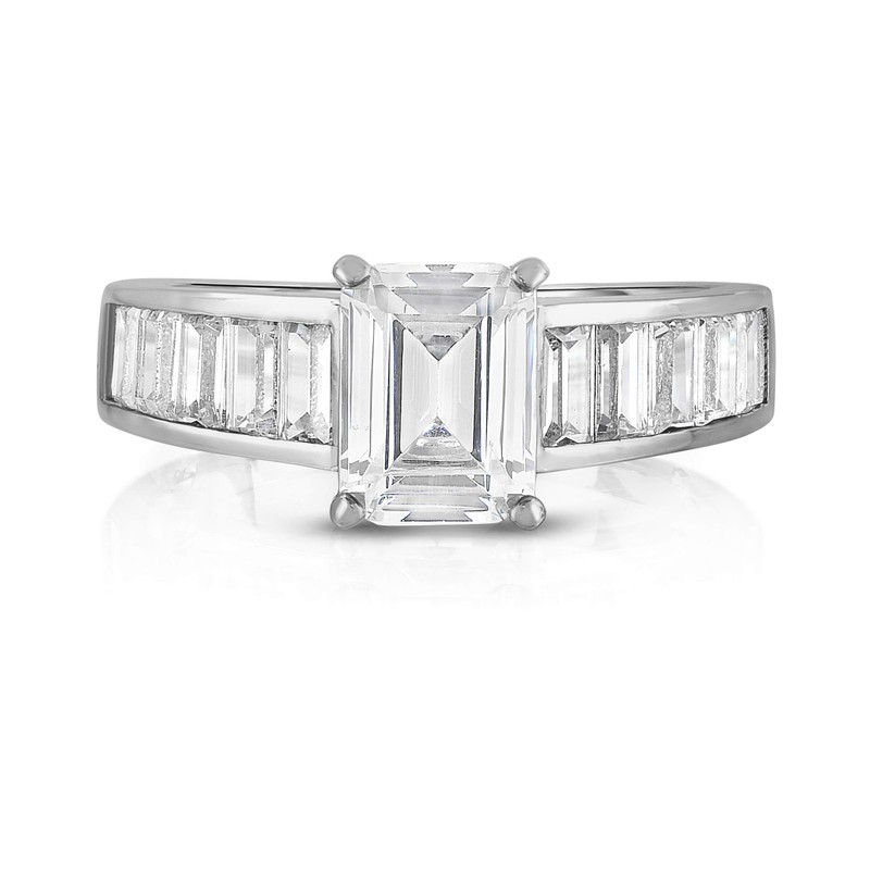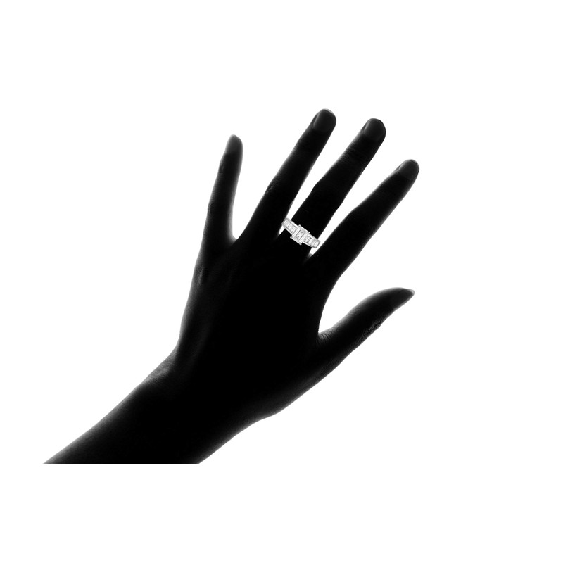 Chamonix jewelry Womens Silver Plated Emerald Cut Style Engagement Ring- Continuous Emerald Cut Stones Running Along the band Of the Ring (8)