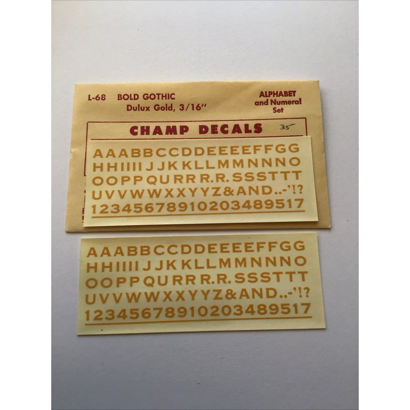 Champ Decals HO Scale L-68: Bold Gothic Dulux Gold 3/16” Alphabet/Numer