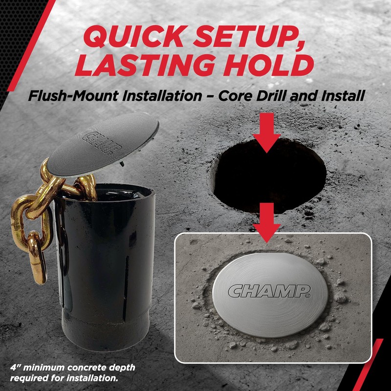 Champ® Floor Anchor Pot, 10-Ton Capacity, Heavy-Duty Auto Body Frame Pulling Anchor for Concrete Floors, Self-tightening with Removable Chain and Flush Lid, Made in USA - 1 Pot